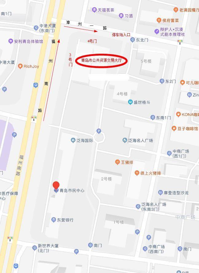 招标(采购)人代表、投标(供货)人和评标(评审)专家可乘坐12、208、210、216、228、314、363、402、503、601、363路公交车,在福州南路闽江路站或青岛市民中心站下车前往,也可自驾从福州南路转漳州一路进入地下停车场。评标(评审)专家请从市民中心3号门(朝向福州南路)专家专用通道刷脸进入专用电梯直达5楼评标区,无法通过刷脸进入的专家请联系导服人员。其他交易主体请一律从4号门进入。